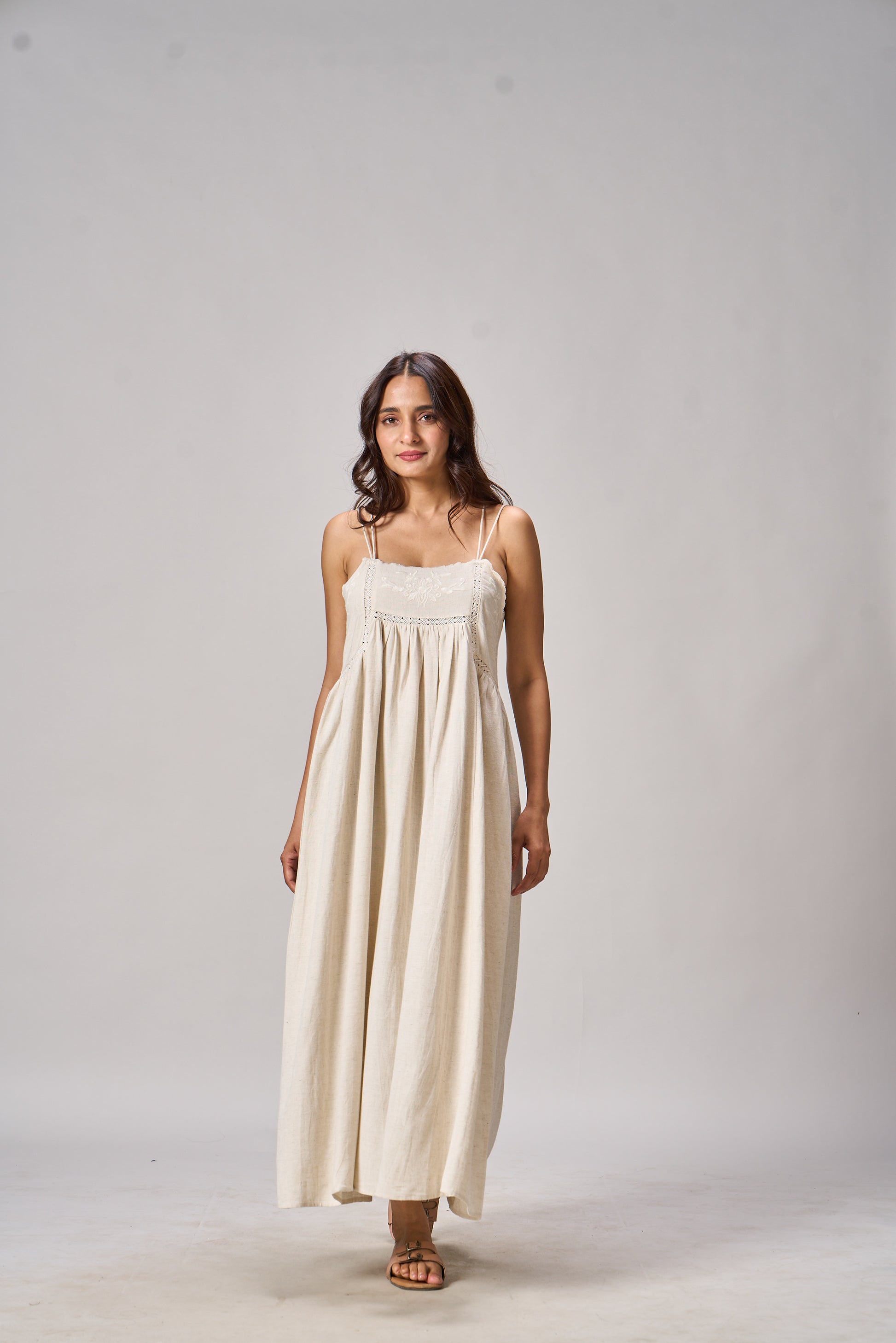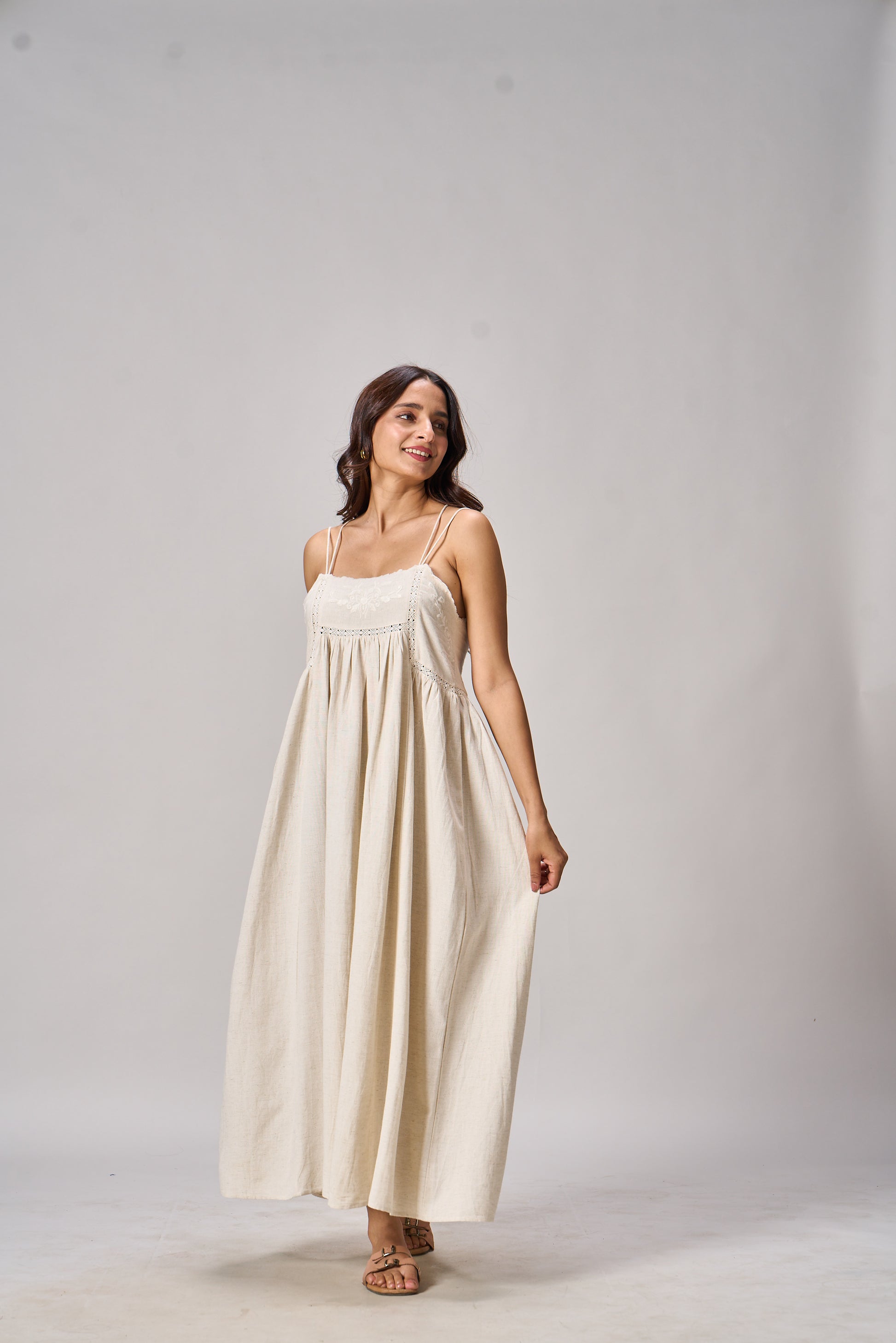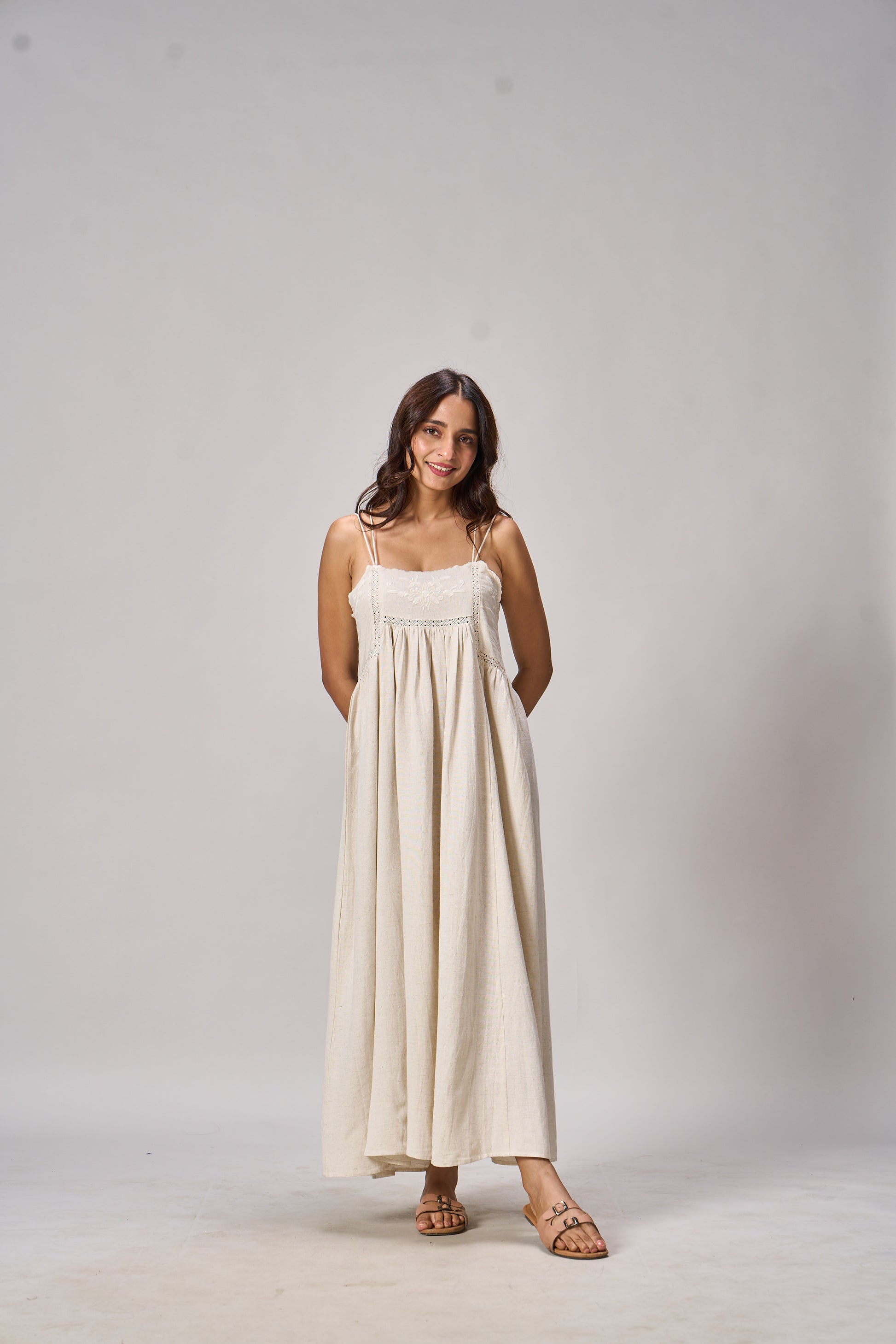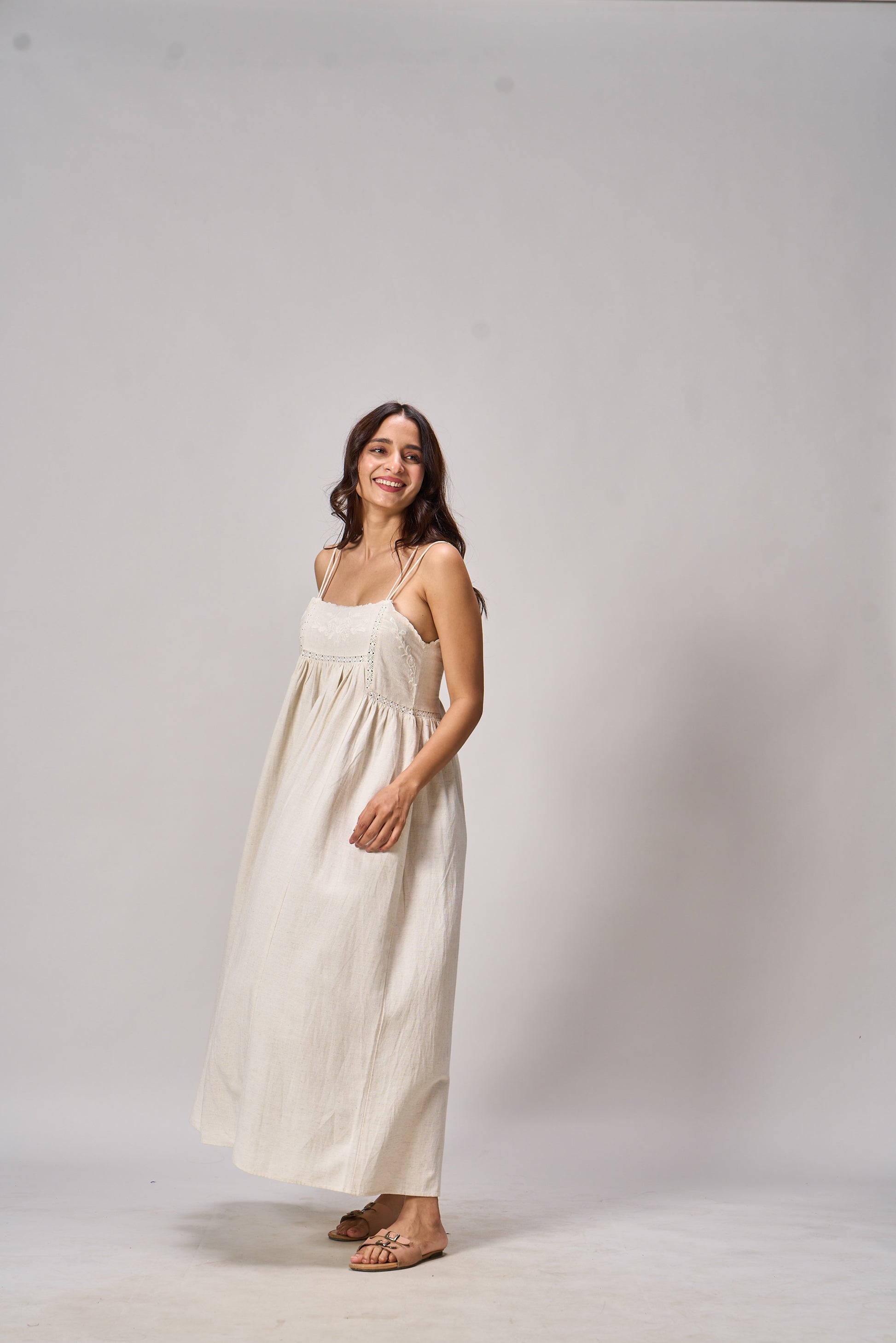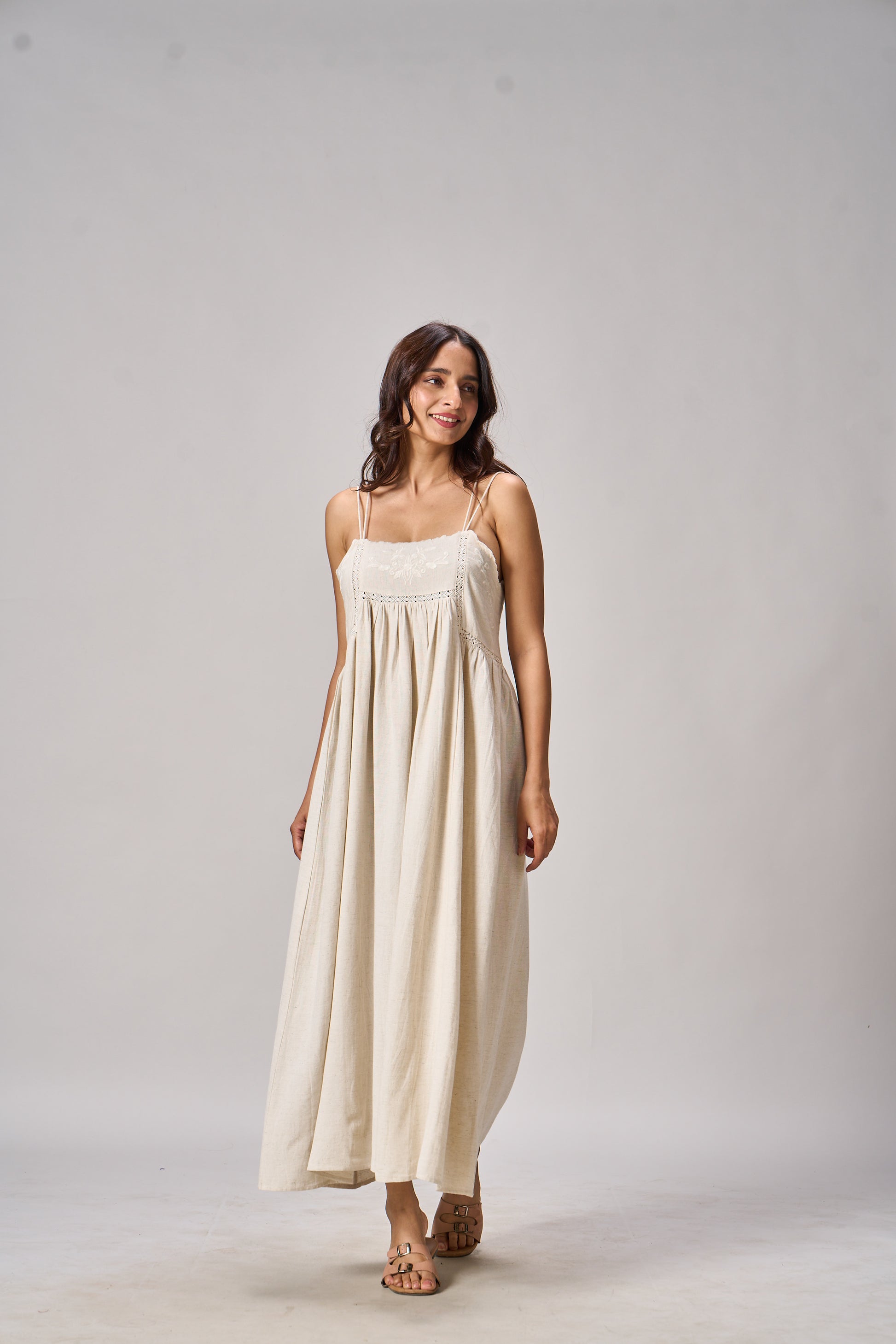 The Alice is a cotton Embroidered maxi dress that exudes effortless charm and comfort — ideal for warm, sunny days & Perfect for picnics, vacations, or casual weekend outings.