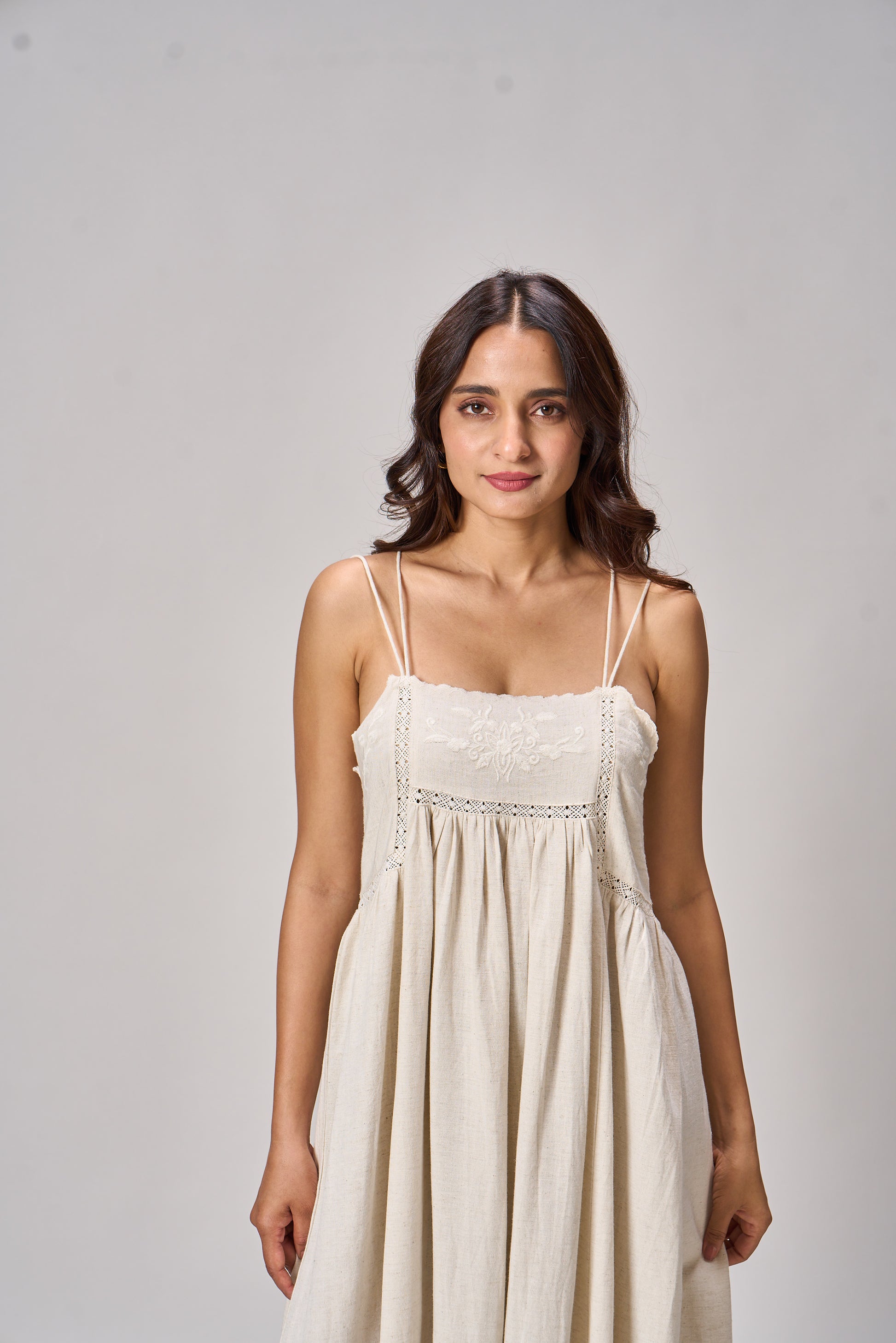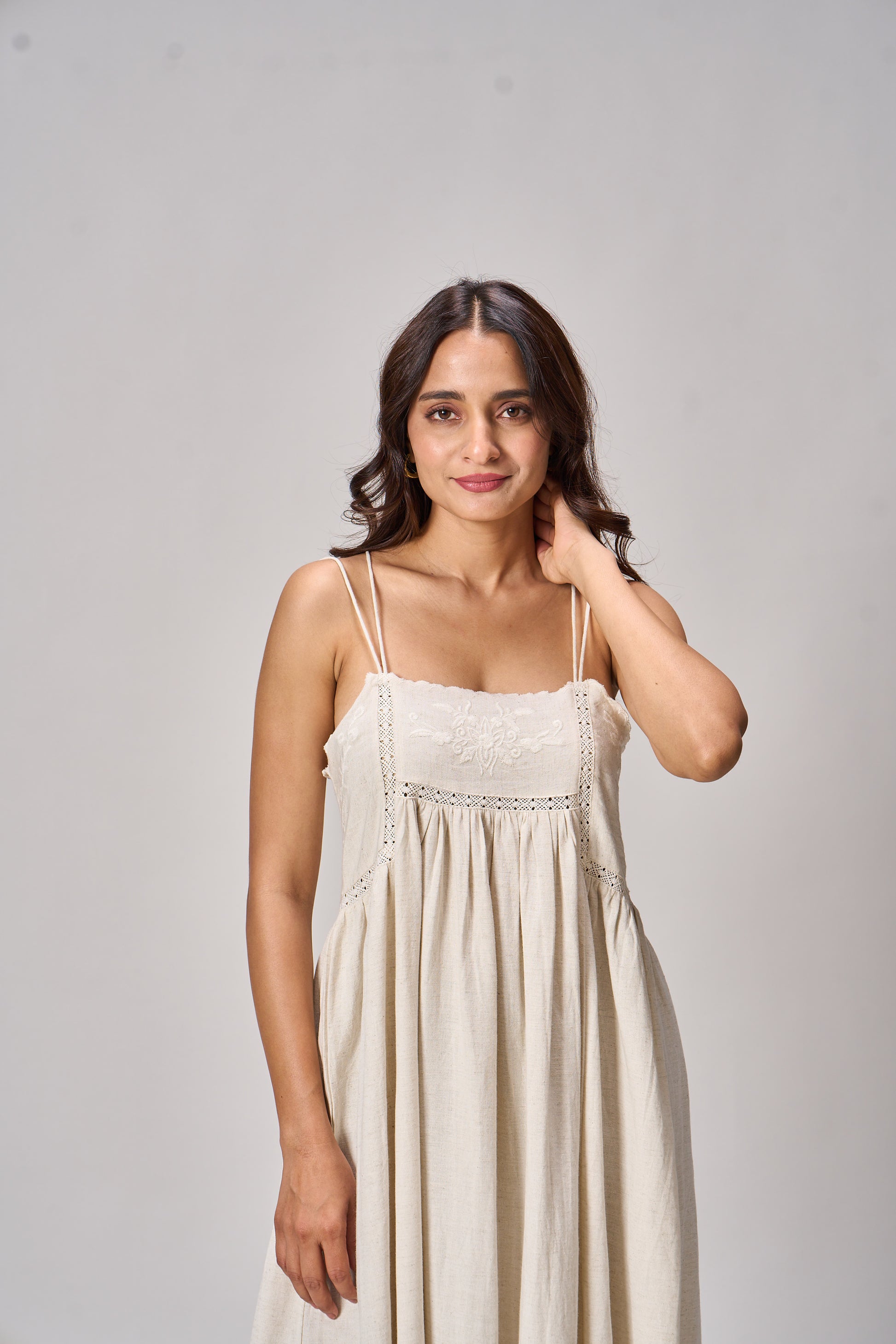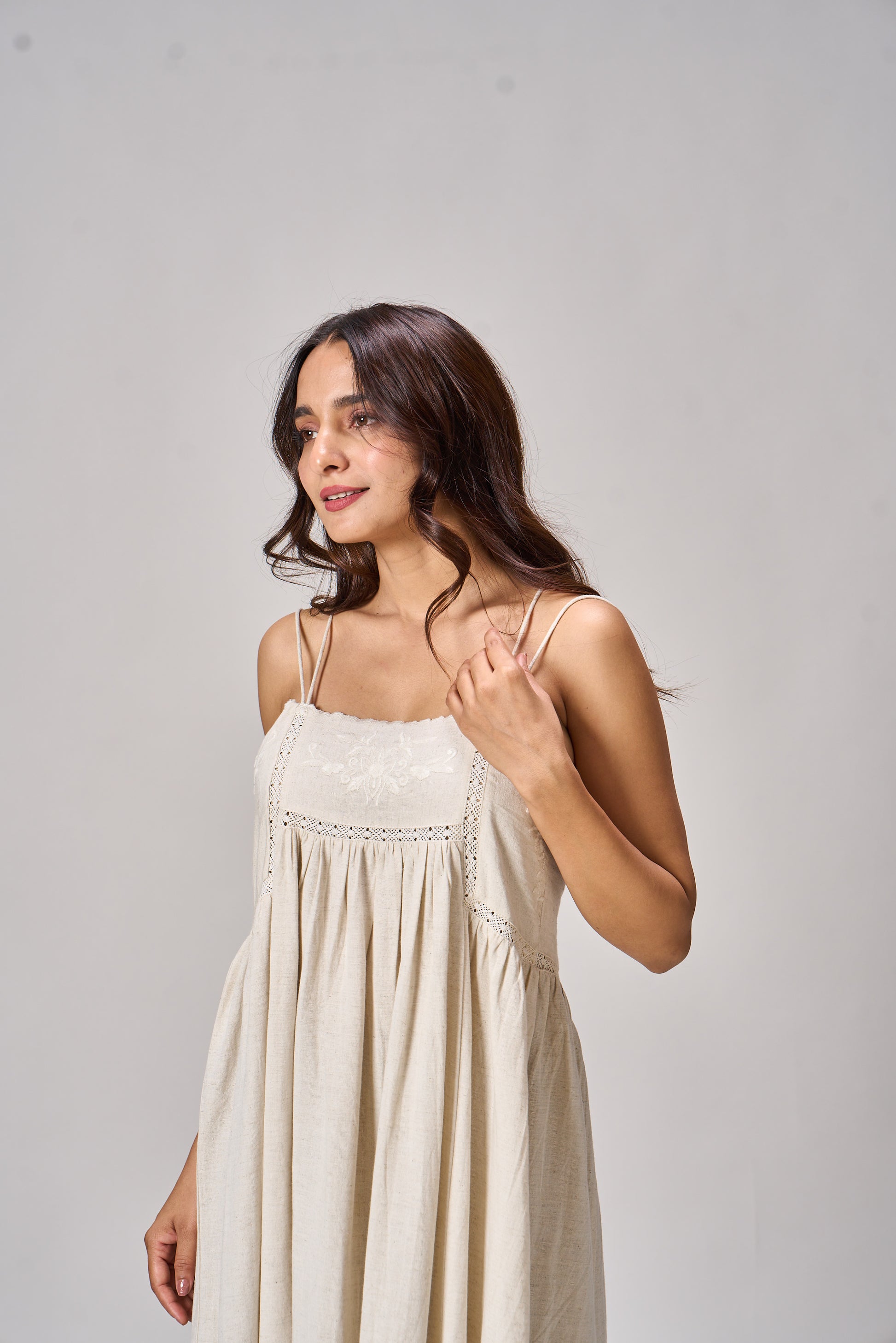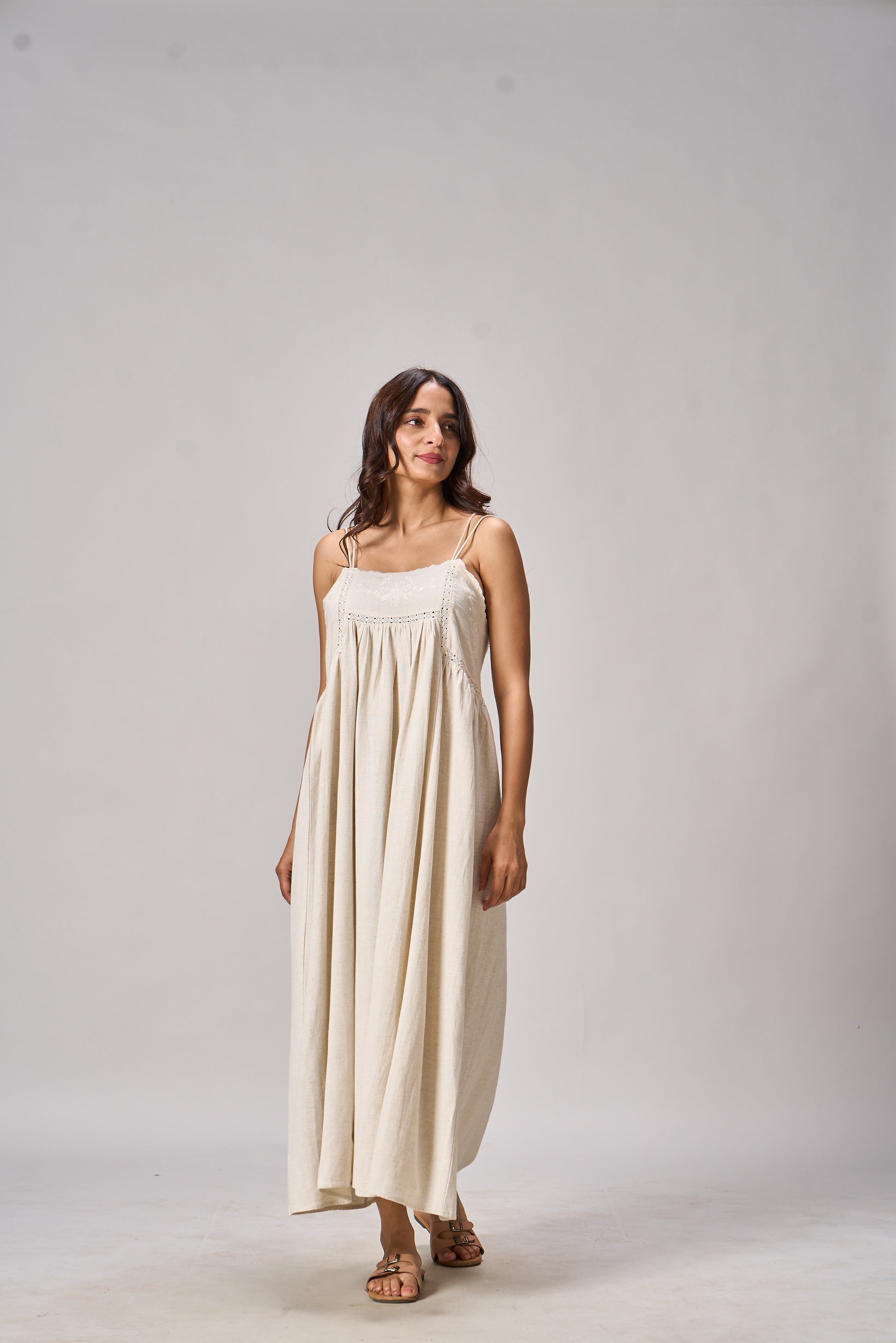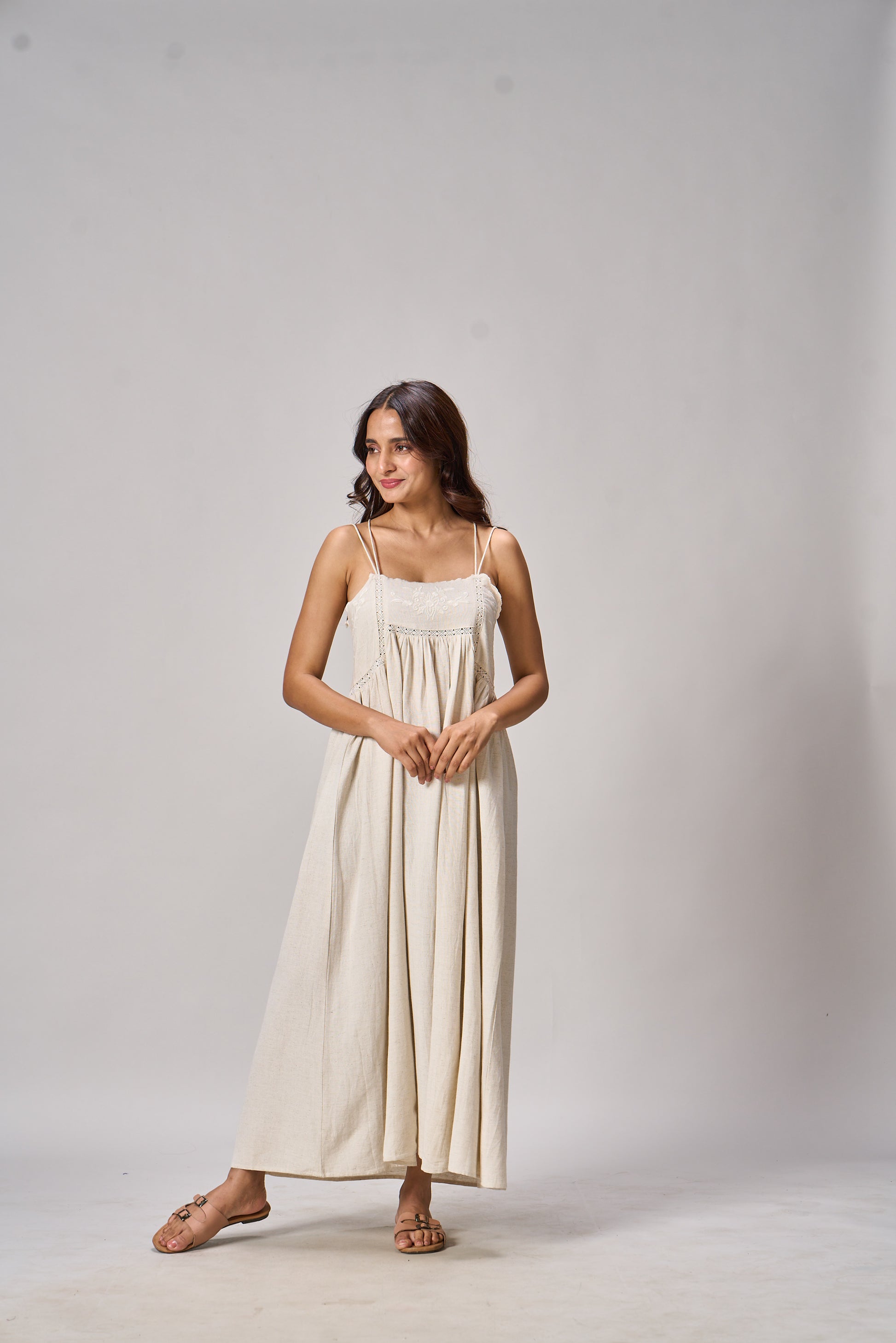 The Alice is a cotton Embroidered maxi dress that exudes effortless charm and comfort — ideal for warm, sunny days & Perfect for picnics, vacations, or casual weekend outings.