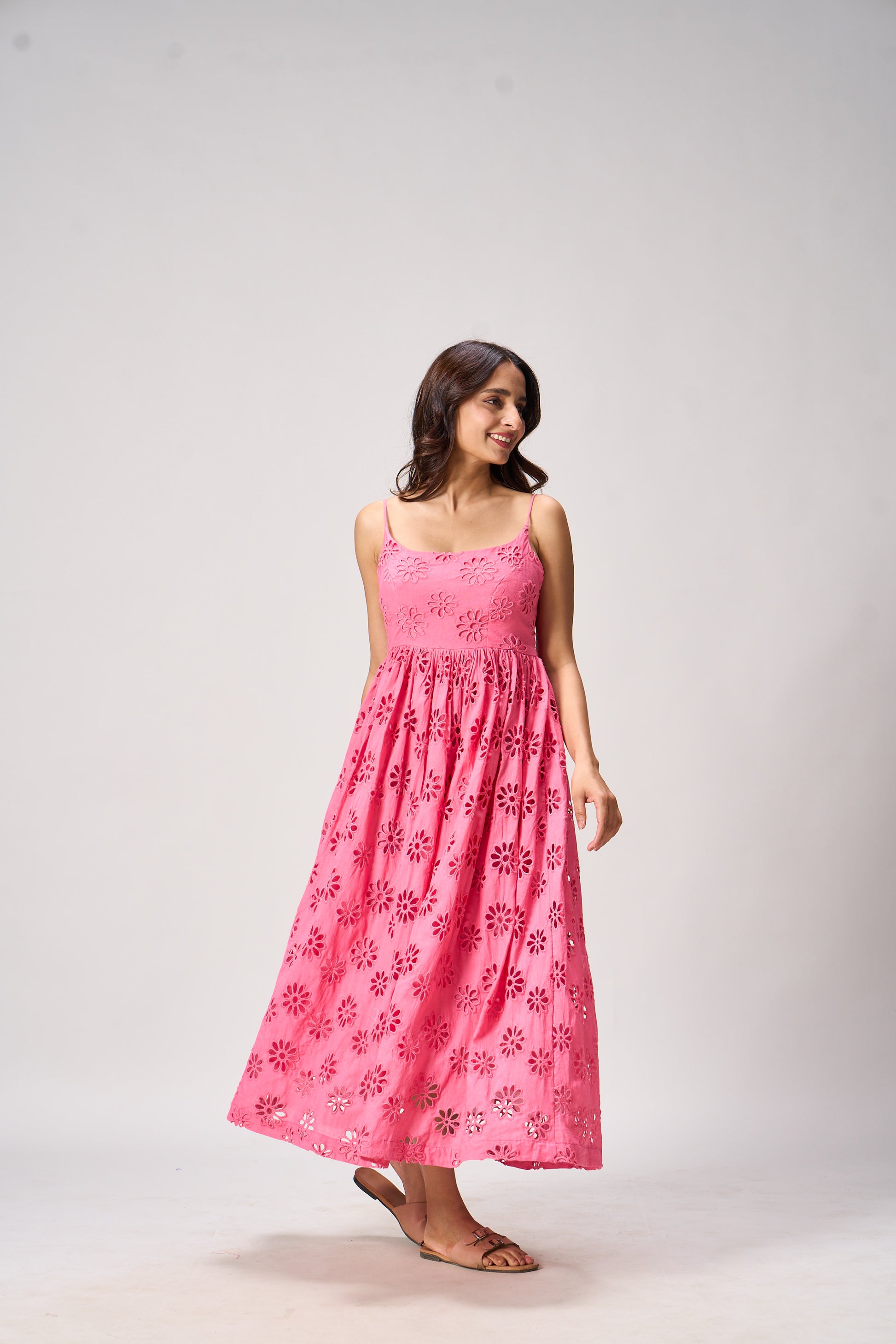 - Key Features: Soft Hakoba fabric, strappy details, Side Zip, ankle length maxi