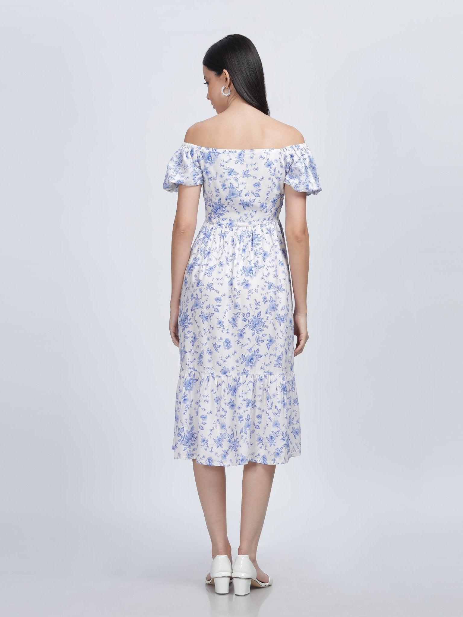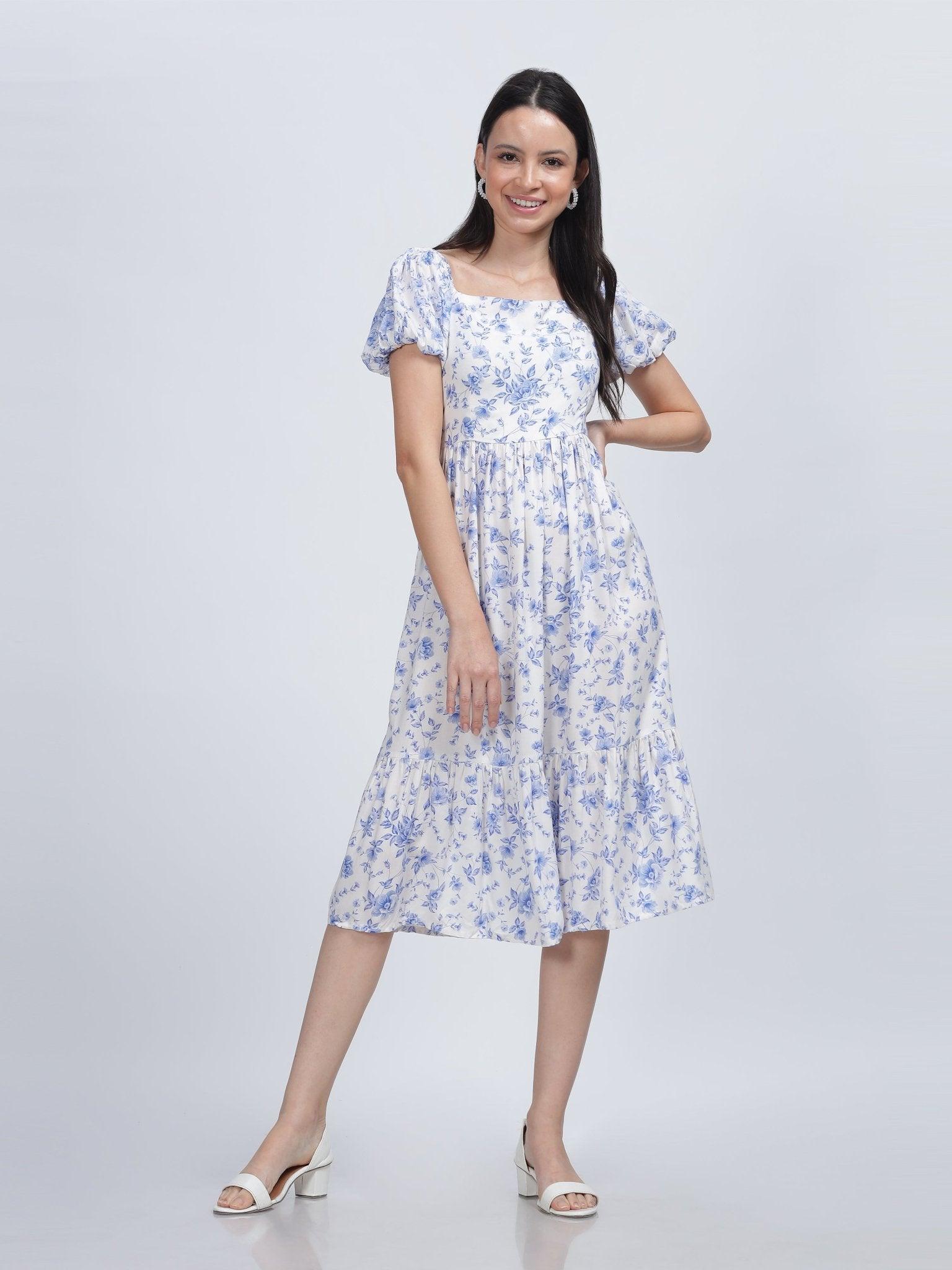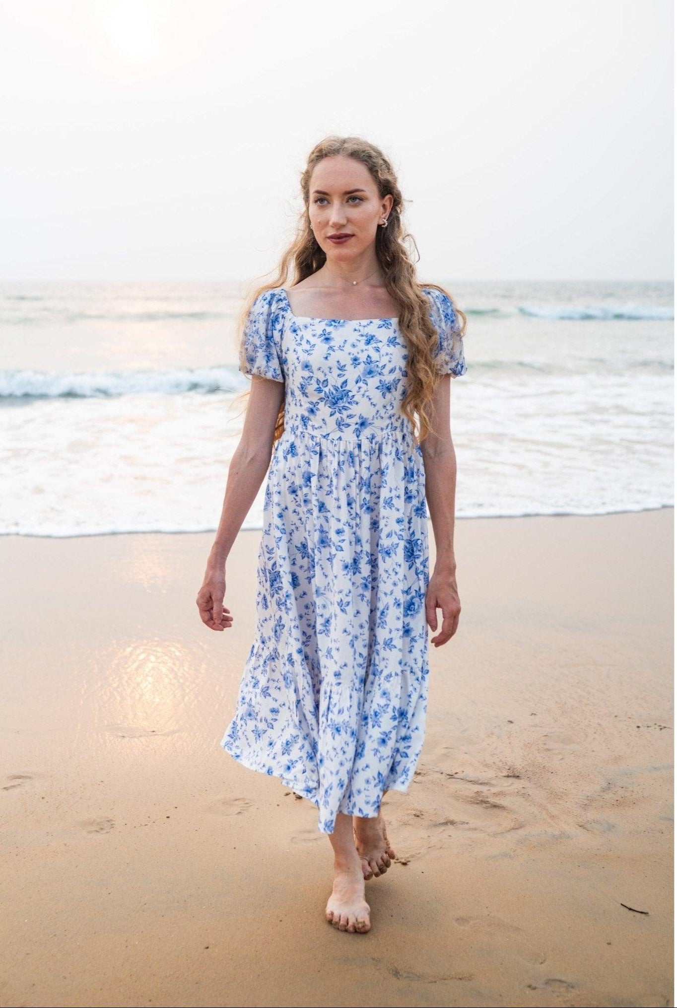 The Fluvia Victorian Dress is a stunning and timeless piece that combines vintage charm with modern elegance. Crafted from soft rayon fabric in a captivating blend of white and French blue, this dress features a beautiful floral print that adds a touch of romanticism.