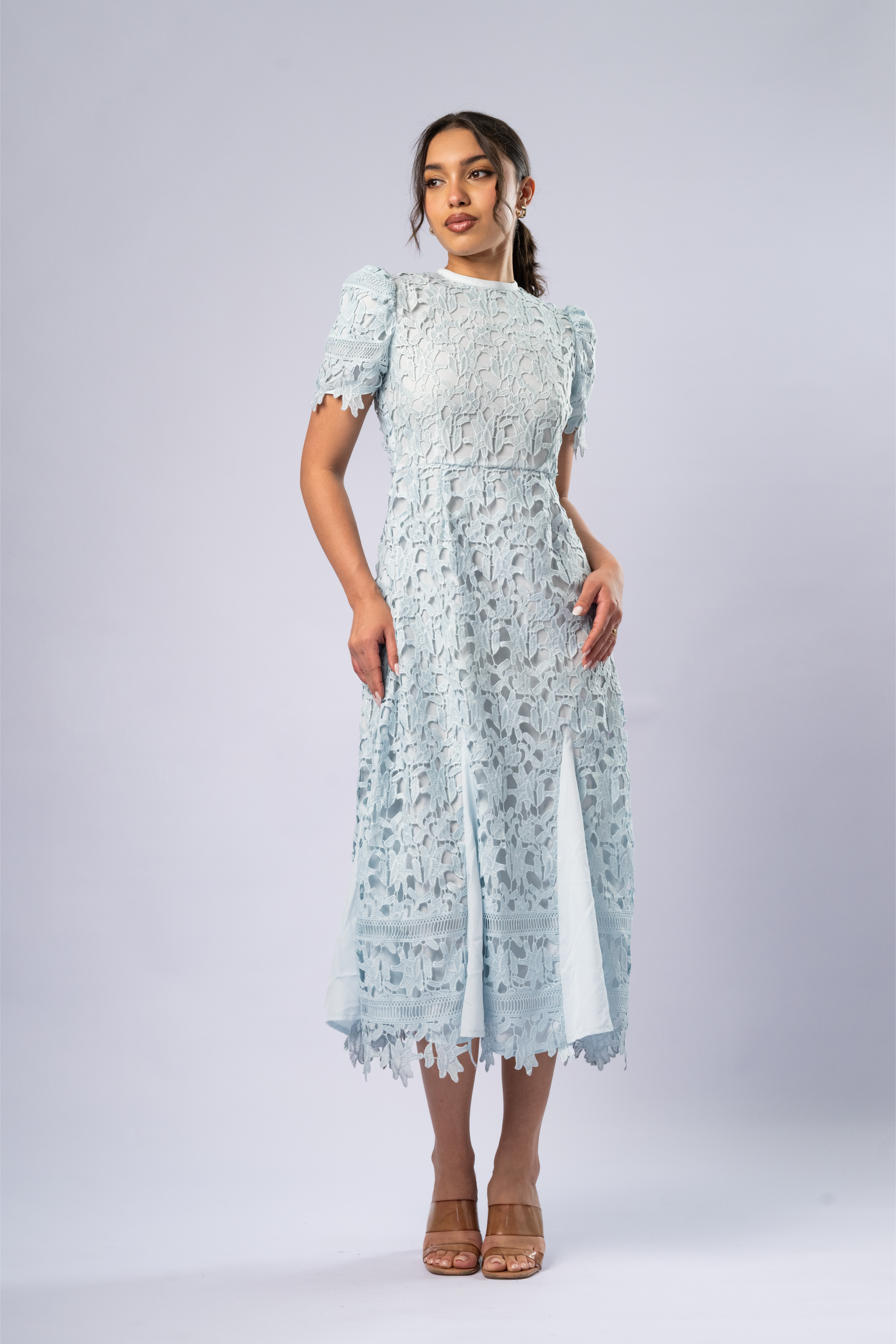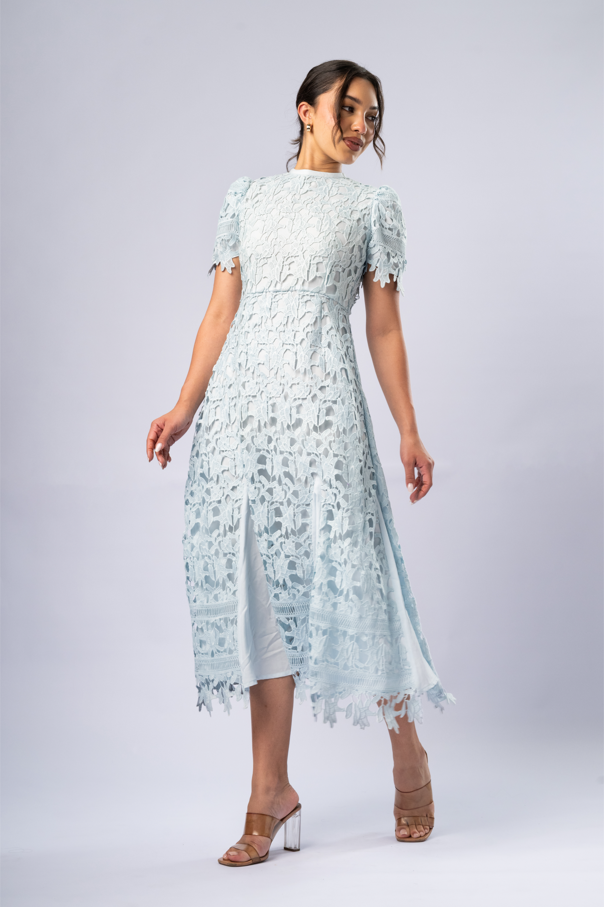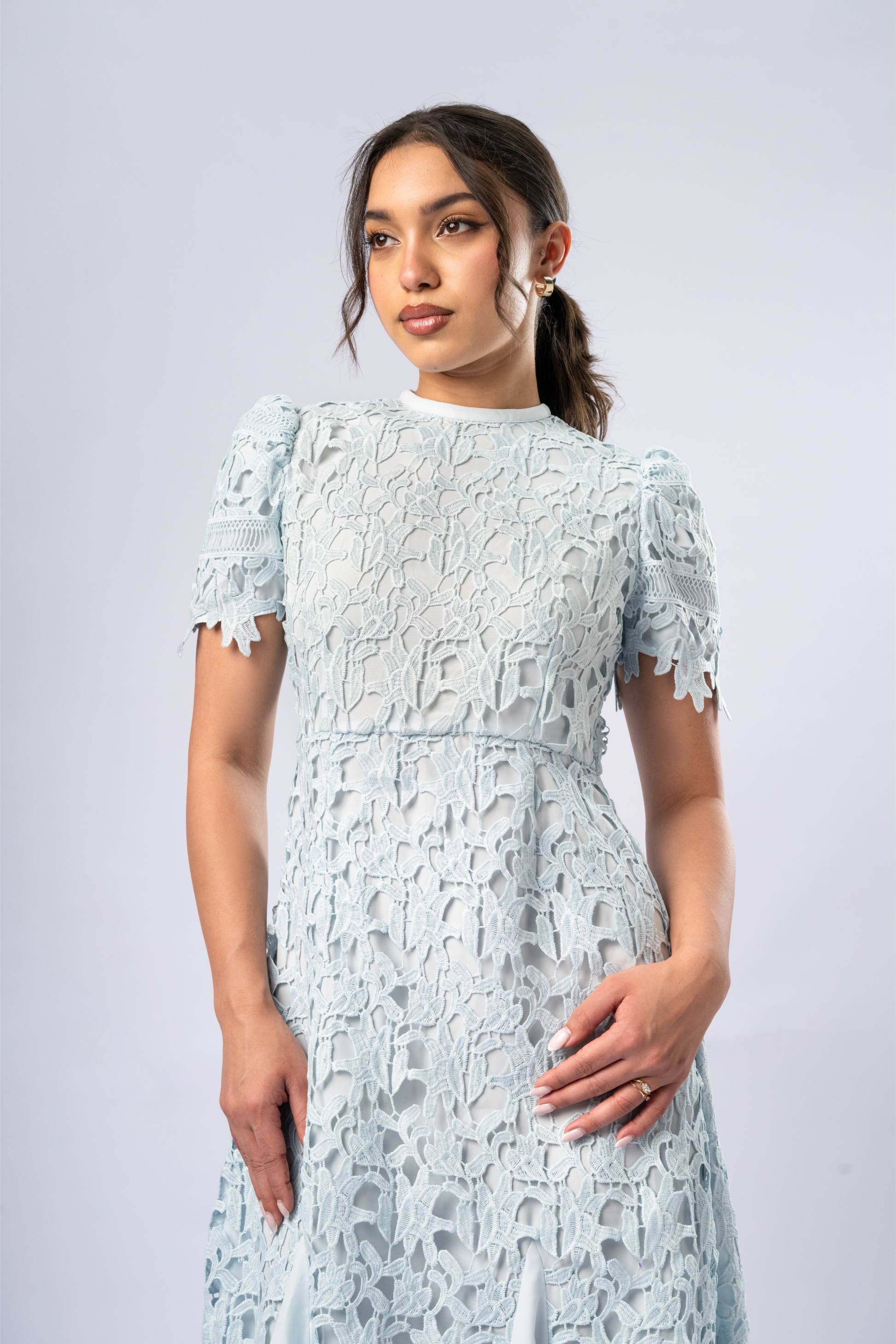 The Frostbite is a timeless lace midi dress featuring a refined turtle neckline and sculpted sleeves, crafted to bring an effortless European elegance to your wardrobe. Its soft silhouette and intricate lace detailing create a sophisticated yet romantic look perfect for evening outings, celebrations, or high-tea moments.