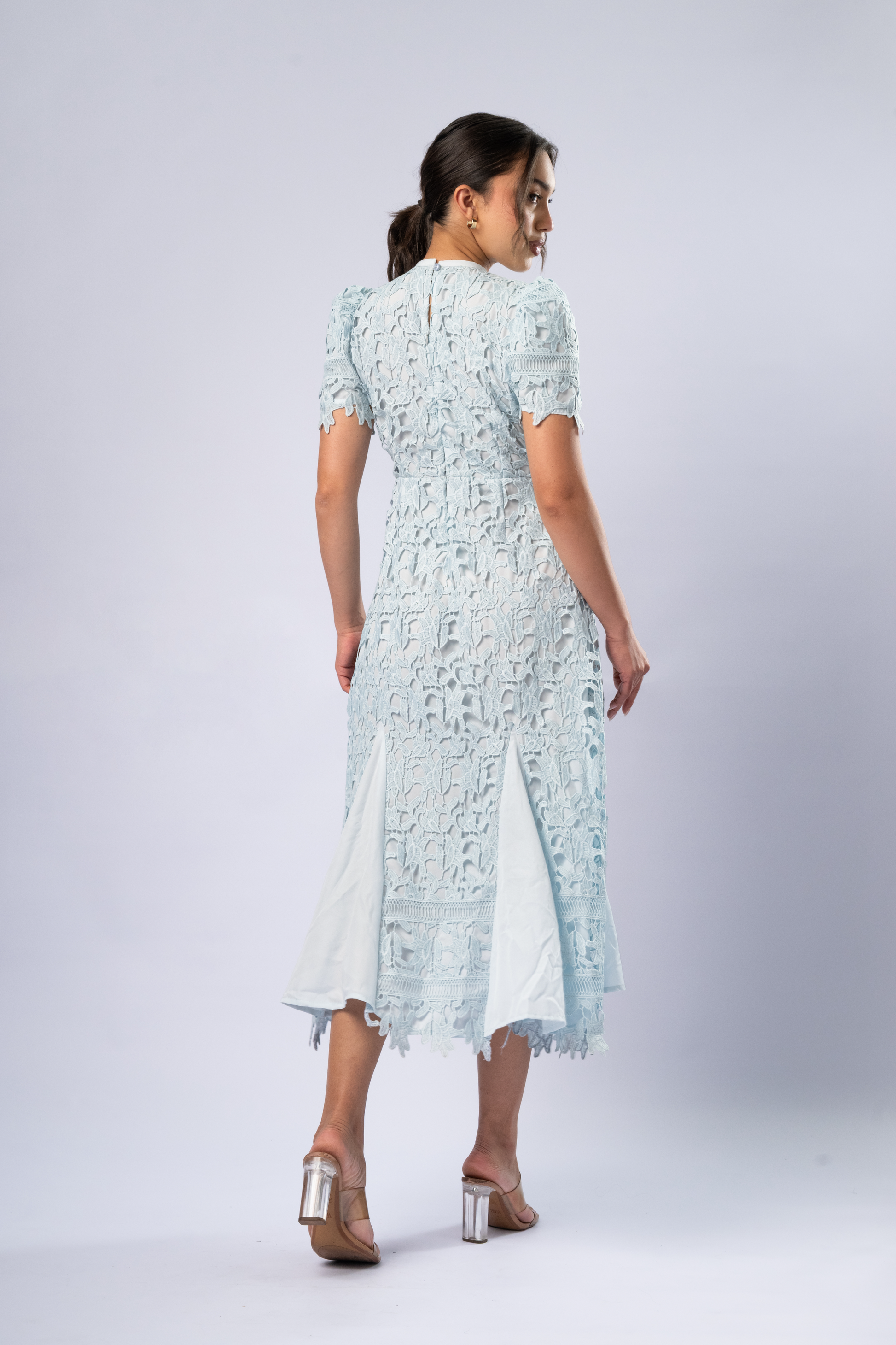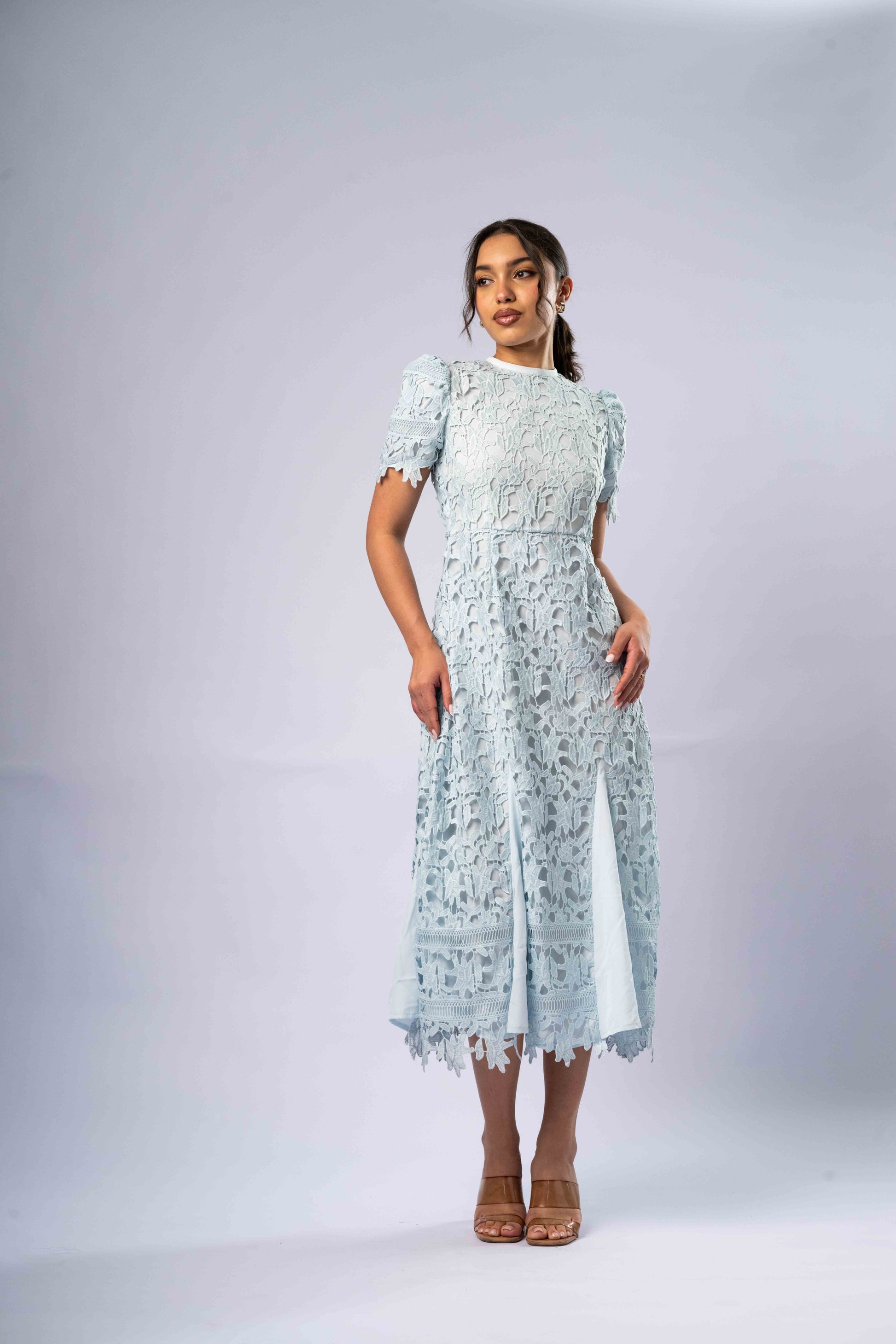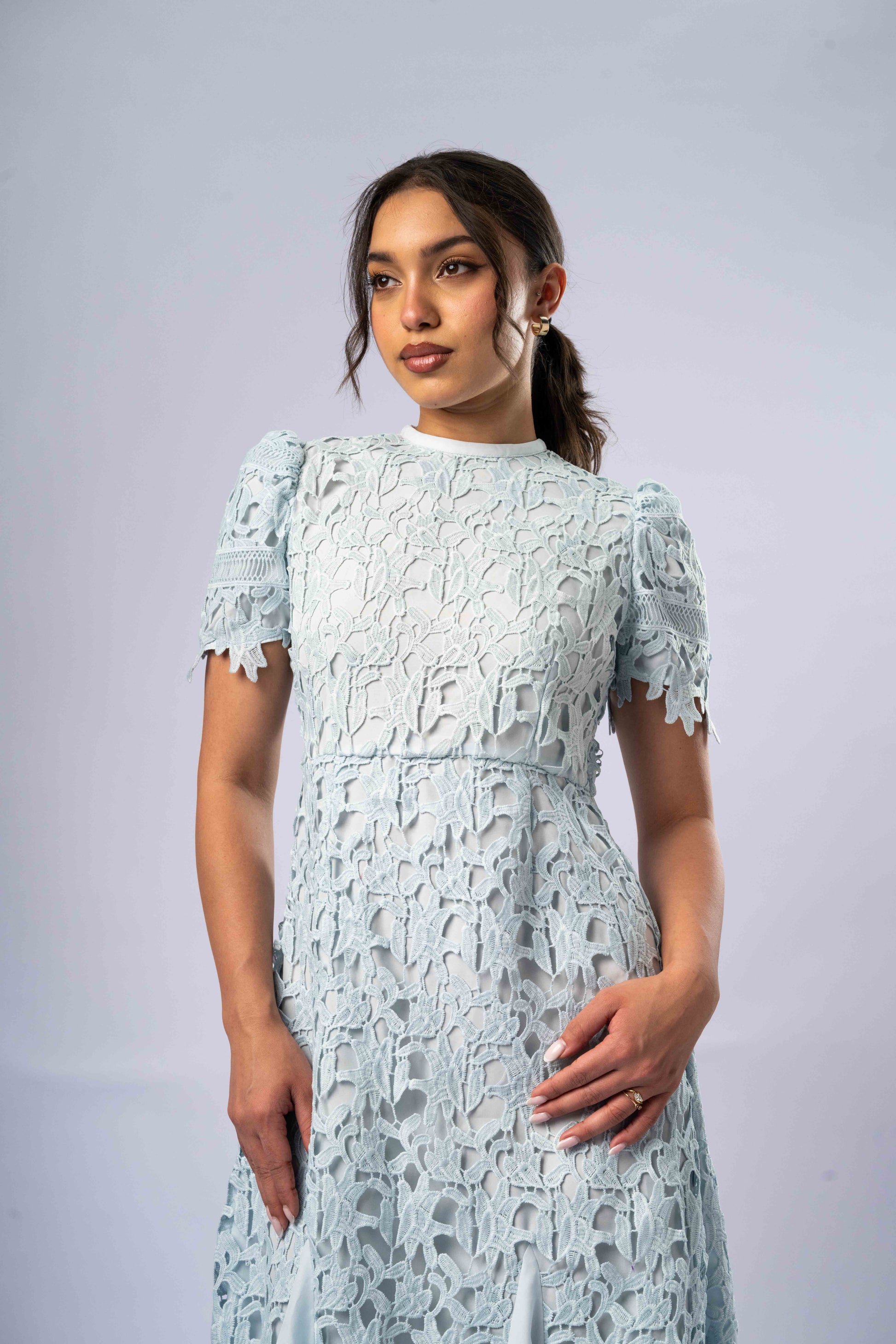 The Frostbite is a timeless lace midi dress featuring a refined turtle neckline and sculpted sleeves, crafted to bring an effortless European elegance to your wardrobe. Its soft silhouette and intricate lace detailing create a sophisticated yet romantic look perfect for evening outings, celebrations, or high-tea moments.