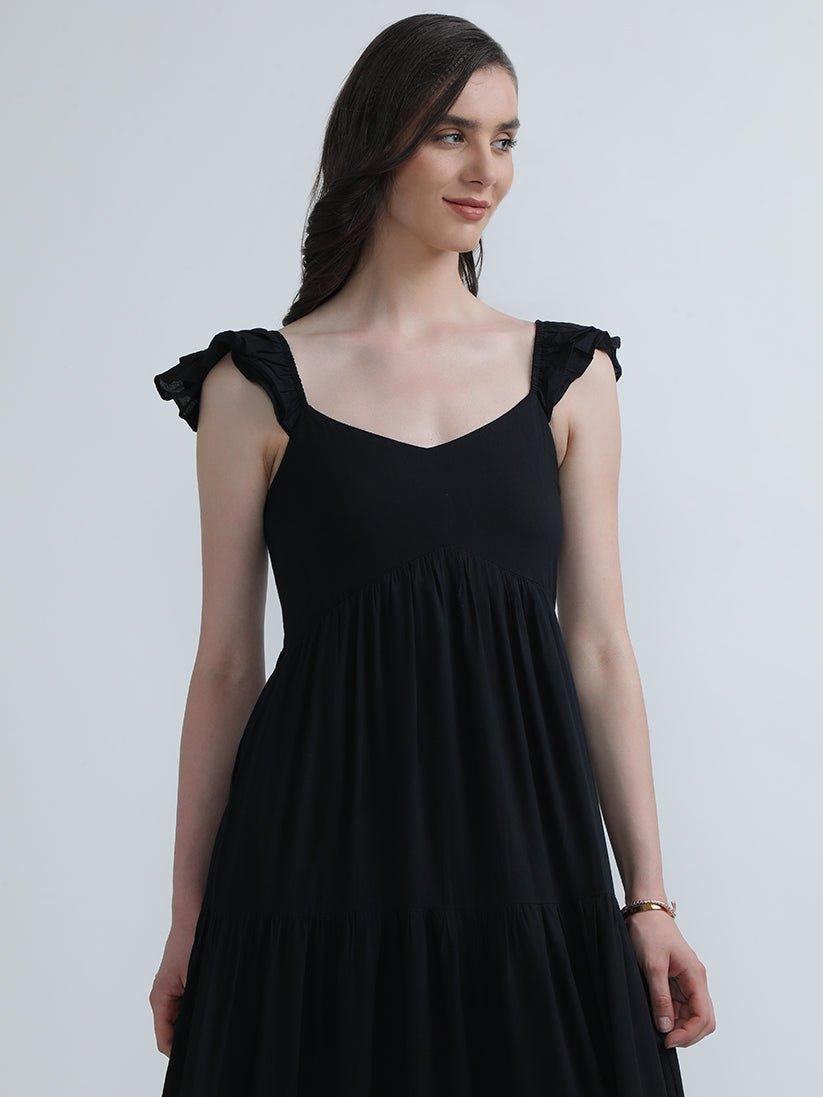 The Grace Dress is a sophisticated maxi dress in a timeless white and black colors. Crafted from luxurious crepe rayon, this dress features cap sleeves and side pockets for added functionality.