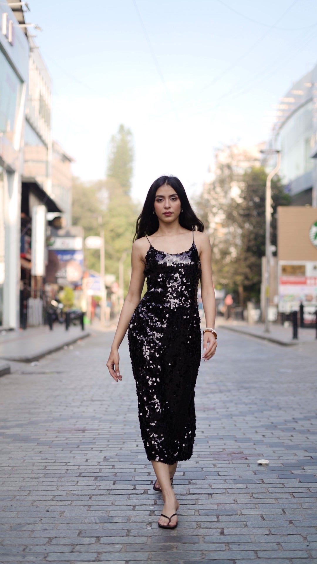 Shine all night in this stunning black sequin ankle-length bodycon dress. Designed for a sleek, figure-hugging fit, this glamorous evening dress features shimmering sequins that add a touch of luxury to any special occasion. Perfect for parties, formal events, or red-carpet style moments, crafted with a soft inner lining for ultimate comfort and a flawless silhouette