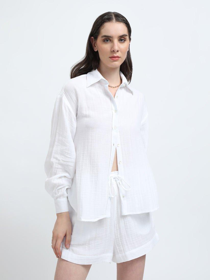This button-down shirt is a versatile and comfortable option. Crafted from high-quality fabric, it features a classic collar, buttoned cuffs.