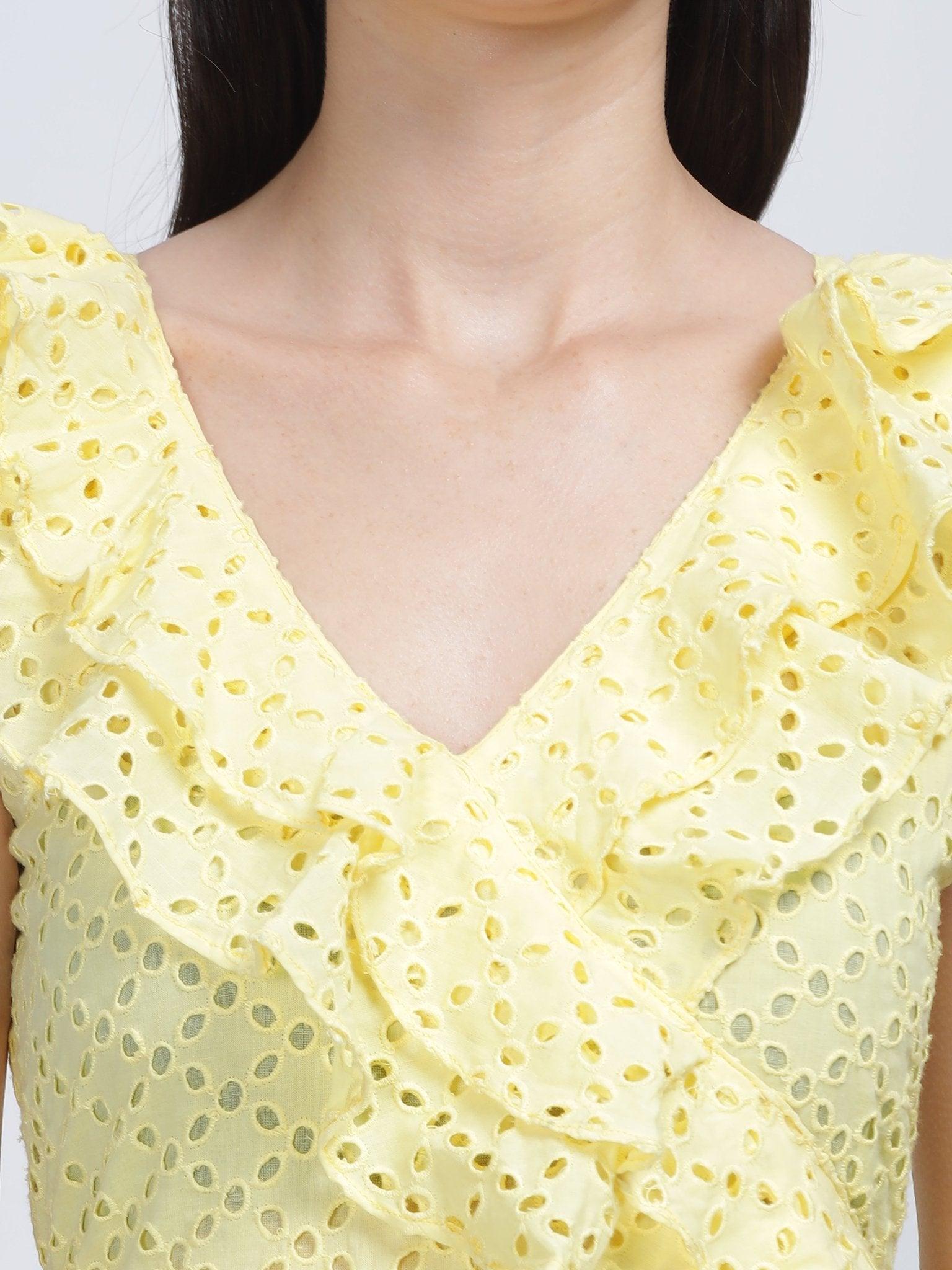 3- Detail: Hakoba Ruffle Dress | Mini Dress | Self Design Embroidered Fabric
