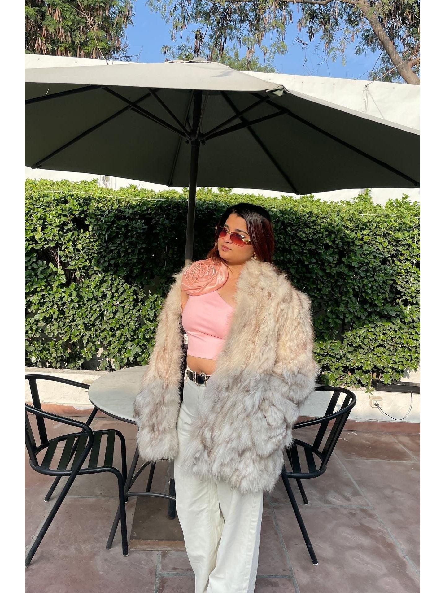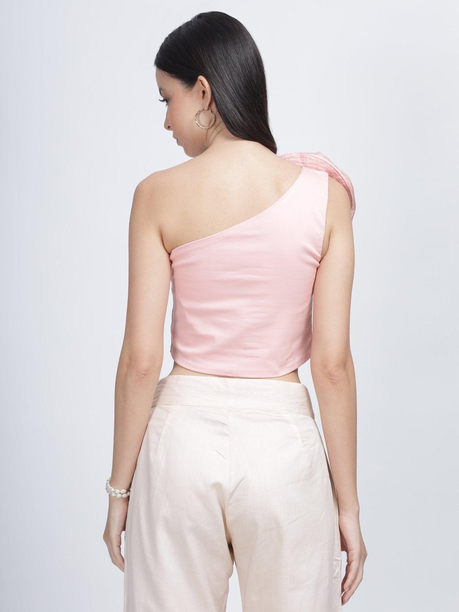 3- Detail: Peach Rose Organza on Shoulder | Single Shoulder Top
