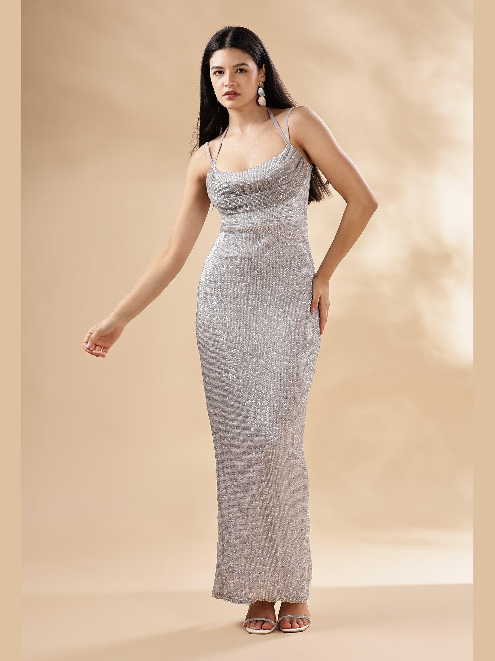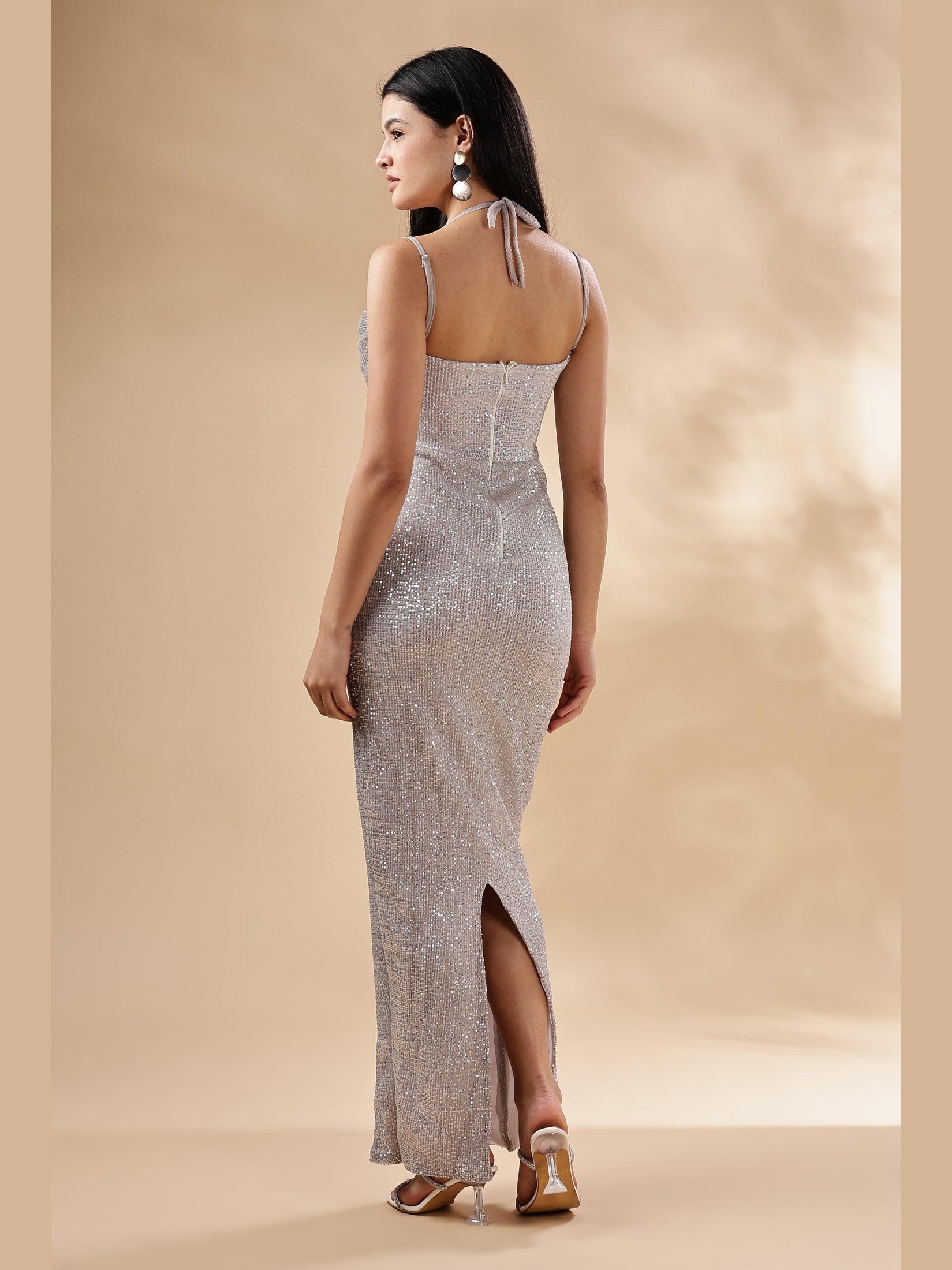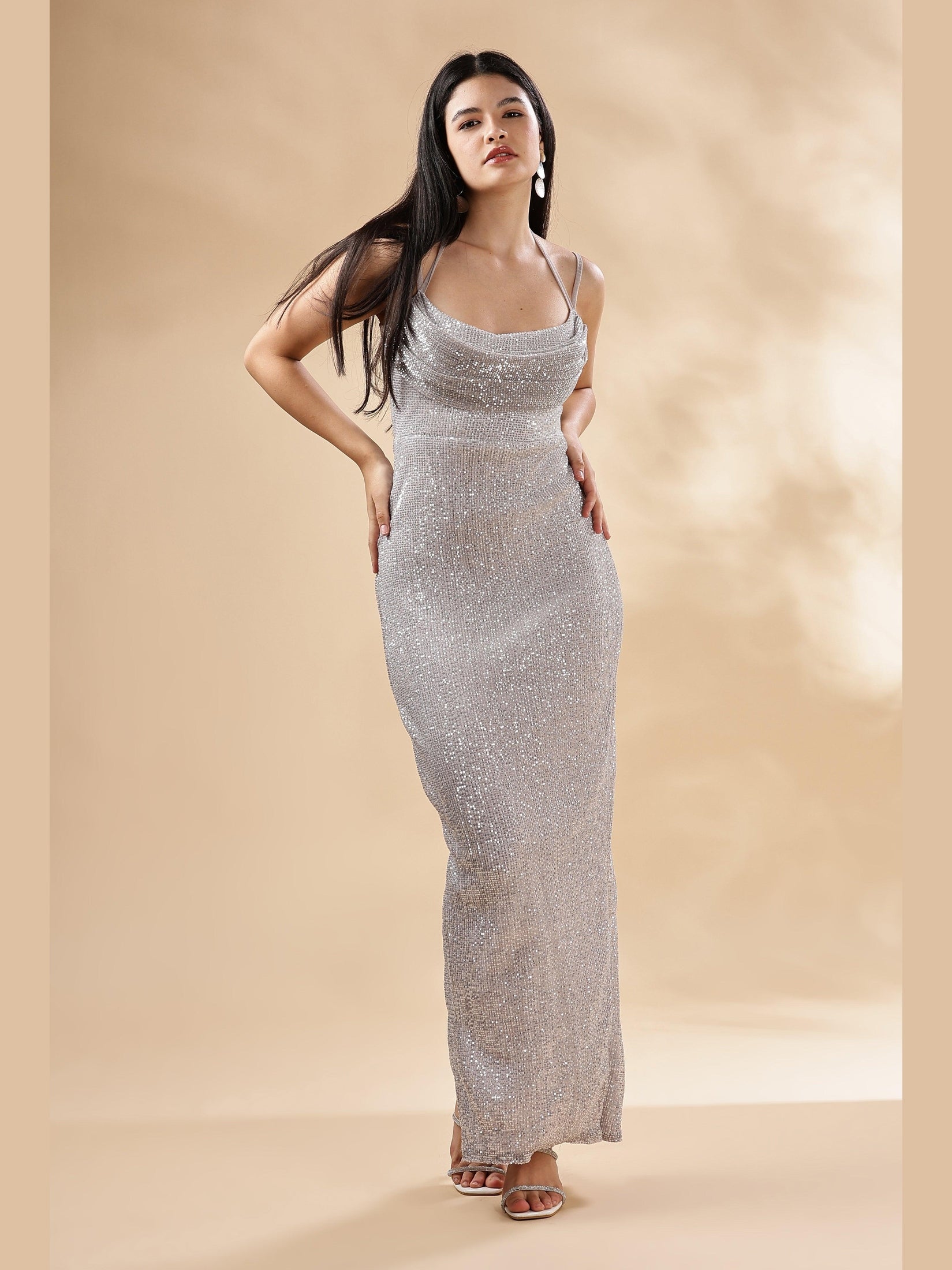 Expertly crafted for a sleek and stylish look, the STARLIT SILVER DRESS will elevate your wardrobe. With its stunning silver hue, this dress is perfect for any special occasion. Made with high-quality materials, it will provide both comfort and confidence. Stand out in the STARLIT dress and shine like a star.